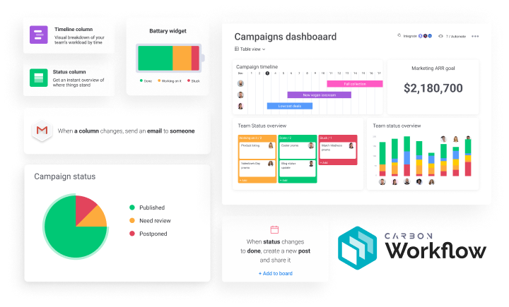 CarbonWeb has 8+ years of experience building on monday.com. As Platinum Channel Partners we’re responsible for consulting clients, developing custom workflows, and onboarding users to the platform. With 40+ full-time monday.com workflow experts, we have the capacity to bring your workflow dreams to life at your desired speed.