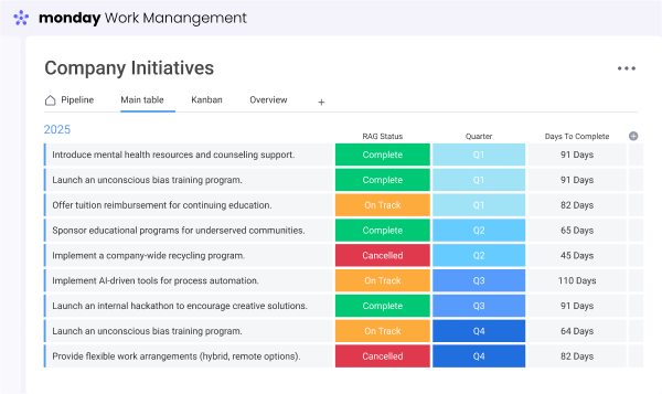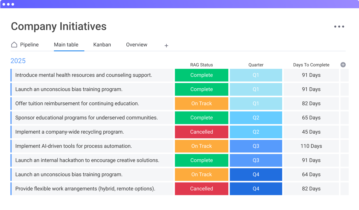A solution that helps organizations structure and track initiatives at the company, division/region, department, and project levels.