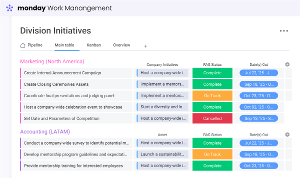 Sync high-level company initiatives, department meetings, and project deadlines to ensure strategic alignment across all tiers.