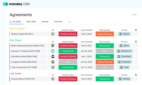 Get this solution at no cost with a monday CRM Onboarding!