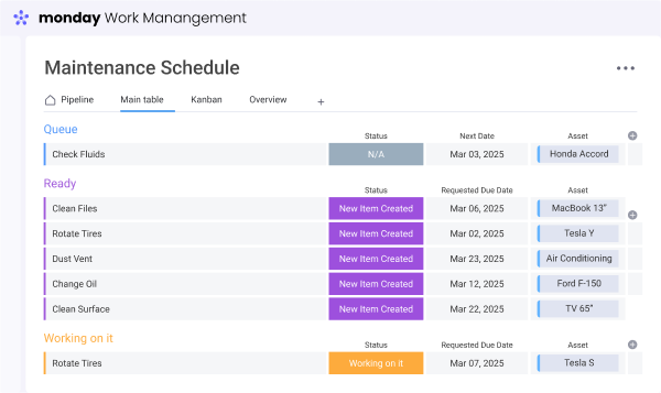 Sync maintenance schedules, work orders, and equipment inspections to ensure timely servicing and prevent downtime.