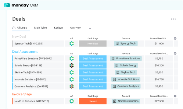 Get this solution at no cost with a monday CRM Onboarding!
