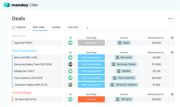 Discover the key features that make up the General Sales Pipeline & CRM solution and learn how they improve collaboration on monday CRM