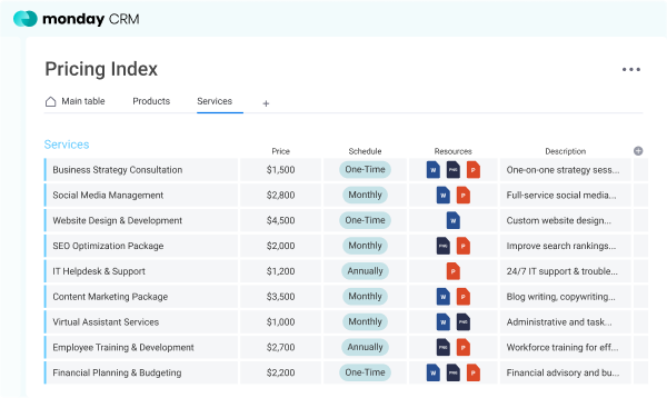 Customizable product and/or service library integrated directly into your sales workflow to streamline quoting and deal management.